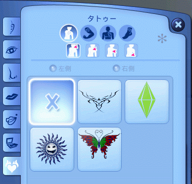 タトゥーを入れるには、シム作成画面じゃないといけないんですが