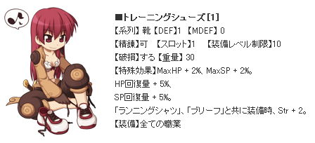 精錬値が 7以上の時、 追加でFlee + 2、 Agi + 2。